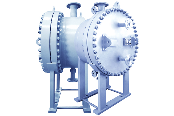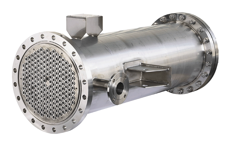 В кожухотрубных теплообменниках основными элементами являются: корпус, пучки труб малого диаметра, трубные решетки, патрубки, крышки, элементы компенсации напряжений. Тепло передается через стенки трубок от среды к среде, одна из которых циркулирует внутри трубок, а другая омывает их снаружи. Для повышения коэффициента теплоотдачи в кожухотрубных теплообменниках направление движения наружной среды несколько раз меняют с помощью перегородок; такой теплообменник носит название многоходового. Внутри трубок скорость движения среды и (коэффициент теплоотдачи) может быть увеличена с помощью специальных приспособлений, меняющих направление потока. В зависимости от области применения, эти теплообменники бывают горизонтальными, вертикальными или наклонными. Промышленные кожухотрубные теплообменники применяют для теплообмена и термохимических процессов между различными жидкостями, парами и газами – как без изменения и с изменением их агрегатного состояния, в качестве конденсаторов, подогревателей и испарителей.